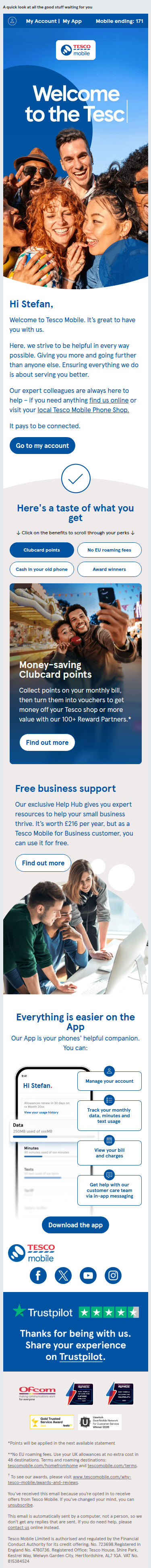 Een warm welkom voor nieuwe klanten van Tesco Mobile