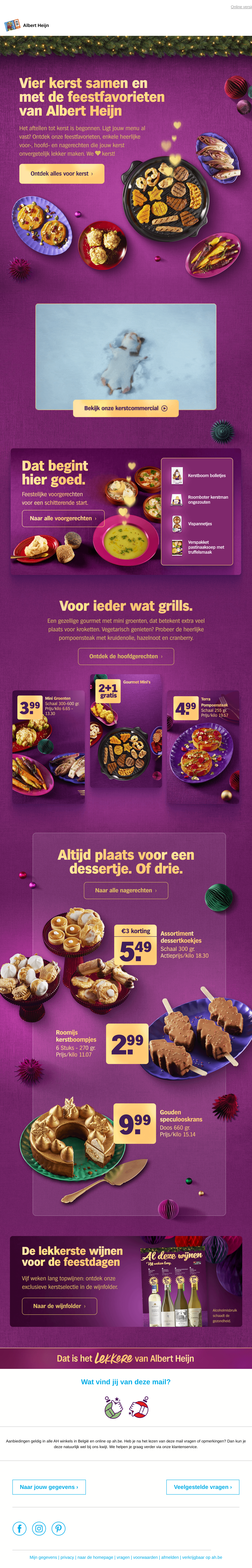Voor de kerstcampagne van Albert Heijn België heb ik een feestelijke e‑mail gebouwd. Het design bevatte prachtige goud‑kleurige teksen met een kleur verloop erin. Alleen was dat niet ideaal voor e‑mailclients die daar niet mee om kunnen gaan, zoals Outlook. Om die look toch te behouden zonder spamfilters te triggeren, heb ik slimme combinaties van geoptimaliseerde afbeeldingen gebruikt, zodat de stijl overeind is gebleven.